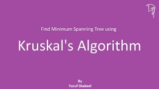 We show how to construct a minimum spanning tree MST for a connected graph using the Kruskal algorithm.